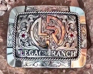 Beautifully handcrafted completely customizable belt buckle. You are able to select your wording, change metal colors on the buckle and stone colors to create a one of a kind piece. This is a great gift for yourself or as a trophy items to give away for your event.