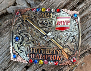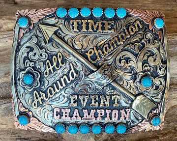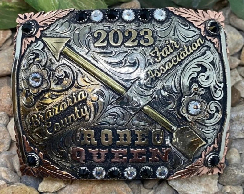 Beautifully handcrafted completely customizable belt buckle. You are able to select your wording, change metal colors on the buckle and stone colors to create a one of a kind piece. This is a great gift for yourself or as a trophy items to give away for your events.