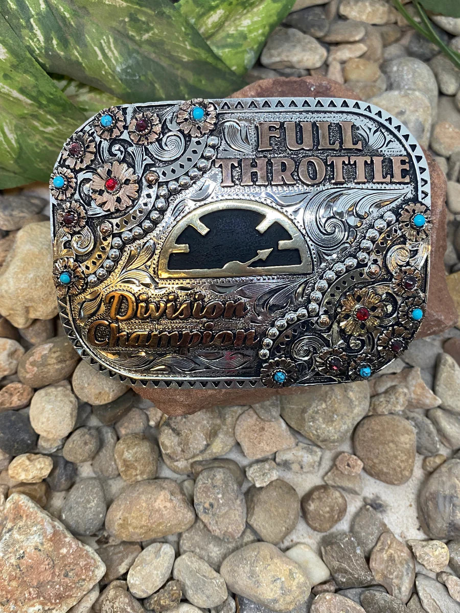 Beautifully handcrafted completely customizable belt buckle. You are able to select your wording, change metal colors on the buckle and stone colors to create a one of a kind piece. This is a great gift for yourself or as a trophy items to give away for your events.