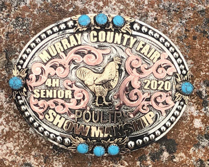 Beautifully handcrafted completely customizable belt buckle. You are able to select your wording, change metal colors on the buckle and stone colors to create a one of a kind piece. This is a great gift for yourself or as a trophy items to give away for your events.