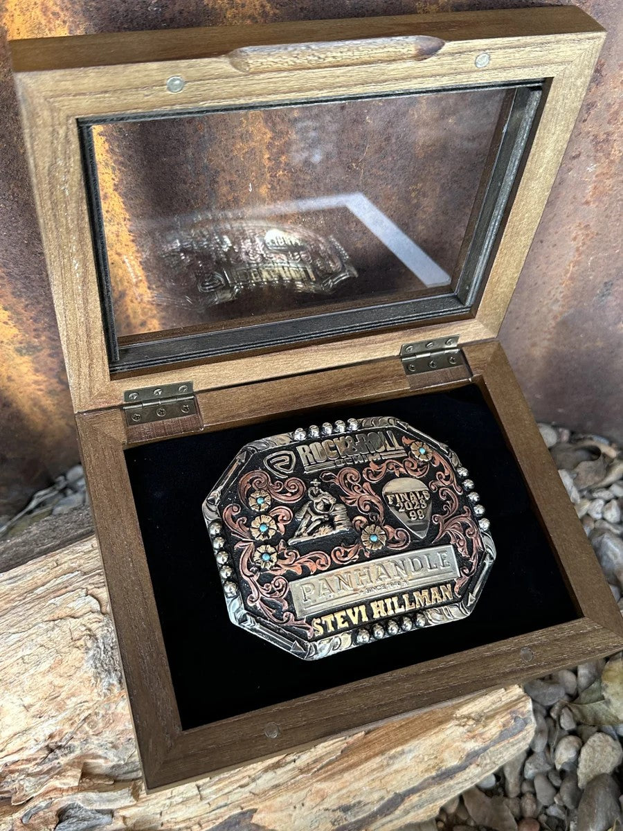 Beautifully handcrafted completely customizable belt buckle. You are able to select your wording, change metal colors on the buckle and stone colors to create a one of a kind piece. This is a great gift for yourself or as a trophy items to give away for your events.