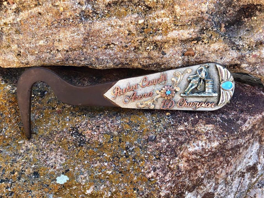 Beautifully handcrafted completely customizable hoof pick. You are able to select your wording, change metal colors and stone colors to create a one of a kind piece. This is a great gift for yourself or as a trophy items to give away for your events.