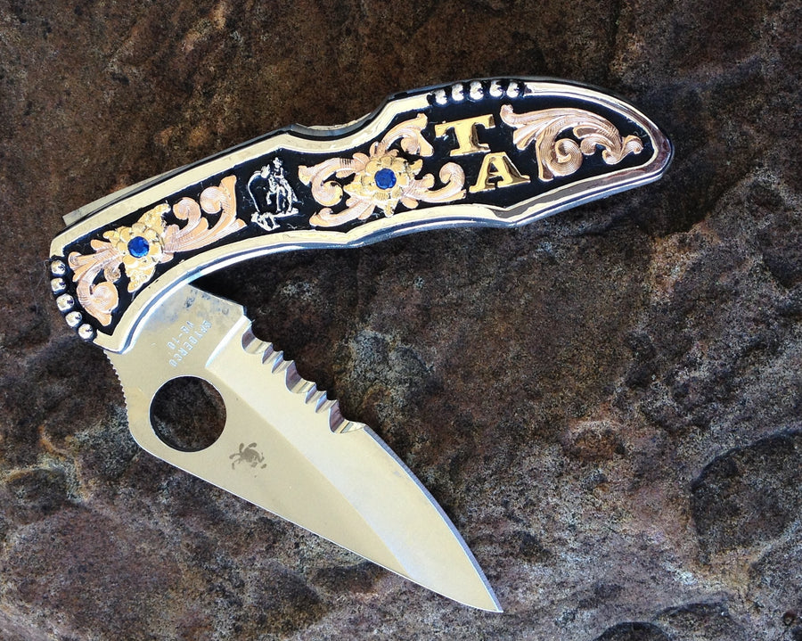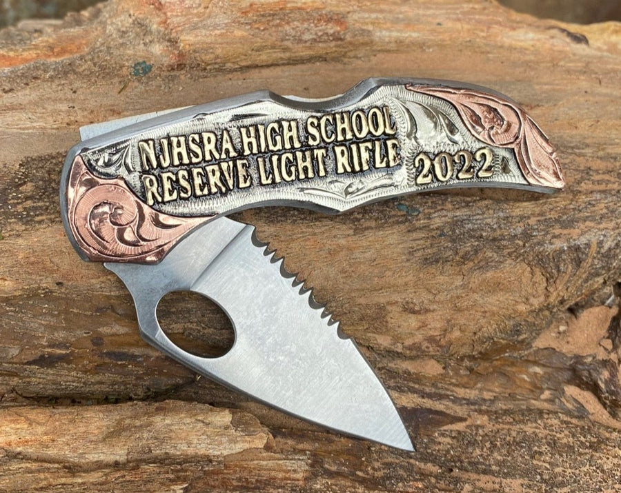 Customizable knives available with you choice of CMSA logo, stones, metals, and paint. Contact CMSA, 888-960-0003 Ext 101, for assistance.